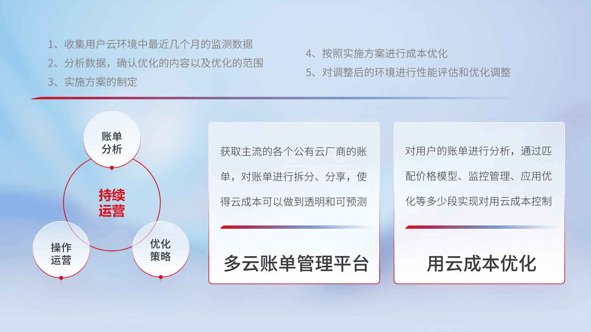监控业务系统资源开销,,对资源的消耗精确计量,,实现费用的透明化管理,,,,不断提升资源使用率,,调整资源购买方式,,,,降低资源费用成本,,用云成本可预测、、用云费用可优化,,云资源配额有据可依。。。。